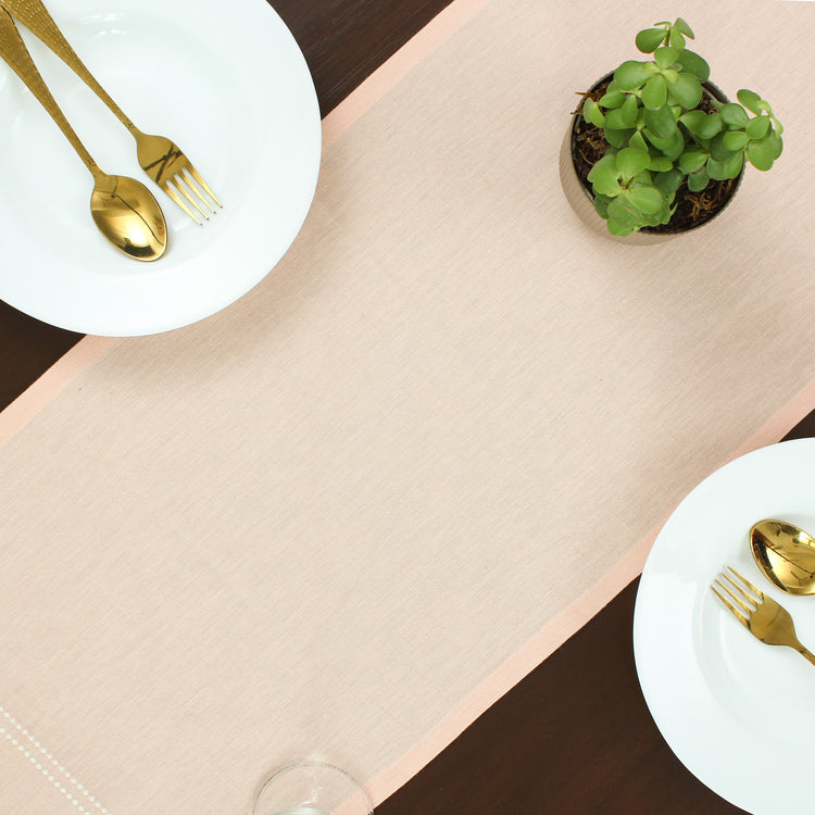 Made from 50% Indian cotton and 50% European linen, this table runner features the colors of cheery blossom. Cheerful feasts and joyous occasions are celebrated under the Sakura trees in the Japanese culture. The runner has vintage motive designs in white thread which exuberates elegance and finesse and symbolize the natural beauty and grace of cherry blossom.