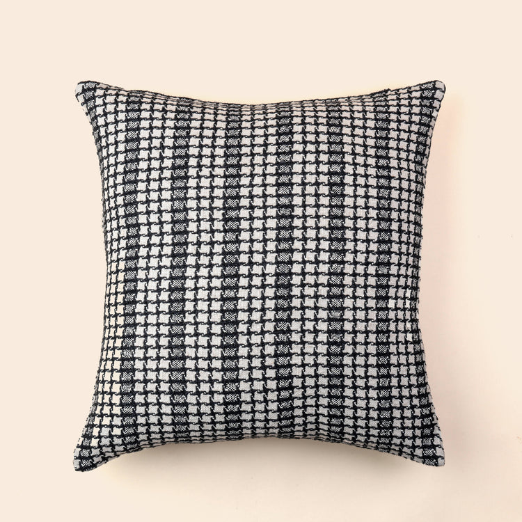 Make a statement with our black cushion cover, featuring a bold black and natural houndstooth design. This iconic pattern adds a touch of sophistication and timeless style to any space. The cushion cover is perfect for those looking to introduce a classic yet contemporary accent to their home décor. The look is bold yet smart and sleek, making this cushion cover a great addition to boost the aesthetic of your living space.