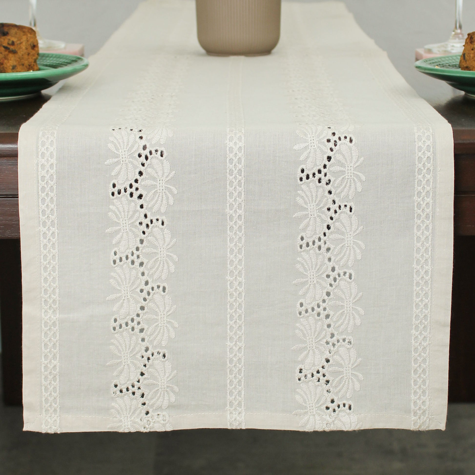 Bring the beauty of Ketti Valley’s floral landscape to your dining table with our Ketti runner. Featuring an exquisite row of flowers meticulously embroidered using the traditional Schiffli technique, this runner captures the vibrant essence and charm of one of India’s most scenic valleys. Designed for those who appreciate artisanal craftsmanship and nature-inspired decor, this runner offers both protection for your surfaces and a touch of timeless beauty.