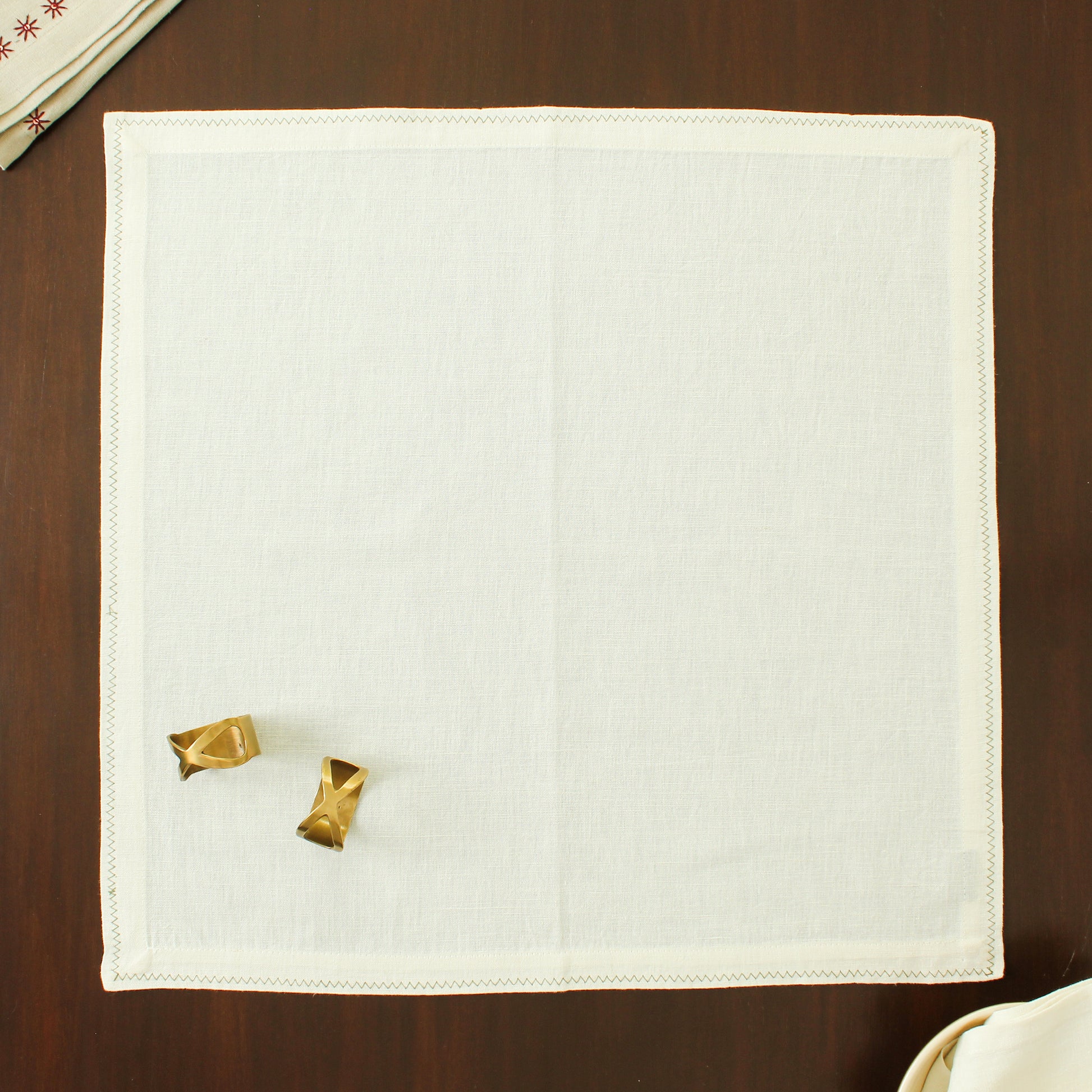 Add a touch of elegance to your table setting with this beautifully crafted cotton and linen napkin. Soft yet durable, it features intricate olive green embroidery along the edges, creating a classic and timeless design. Perfect for both everyday use and special occasions, this napkin is a versatile addition to any dining experience. The natural blend of cotton and linen ensures a luxurious feel, while the green detailing adds sophistication and class to this design.
