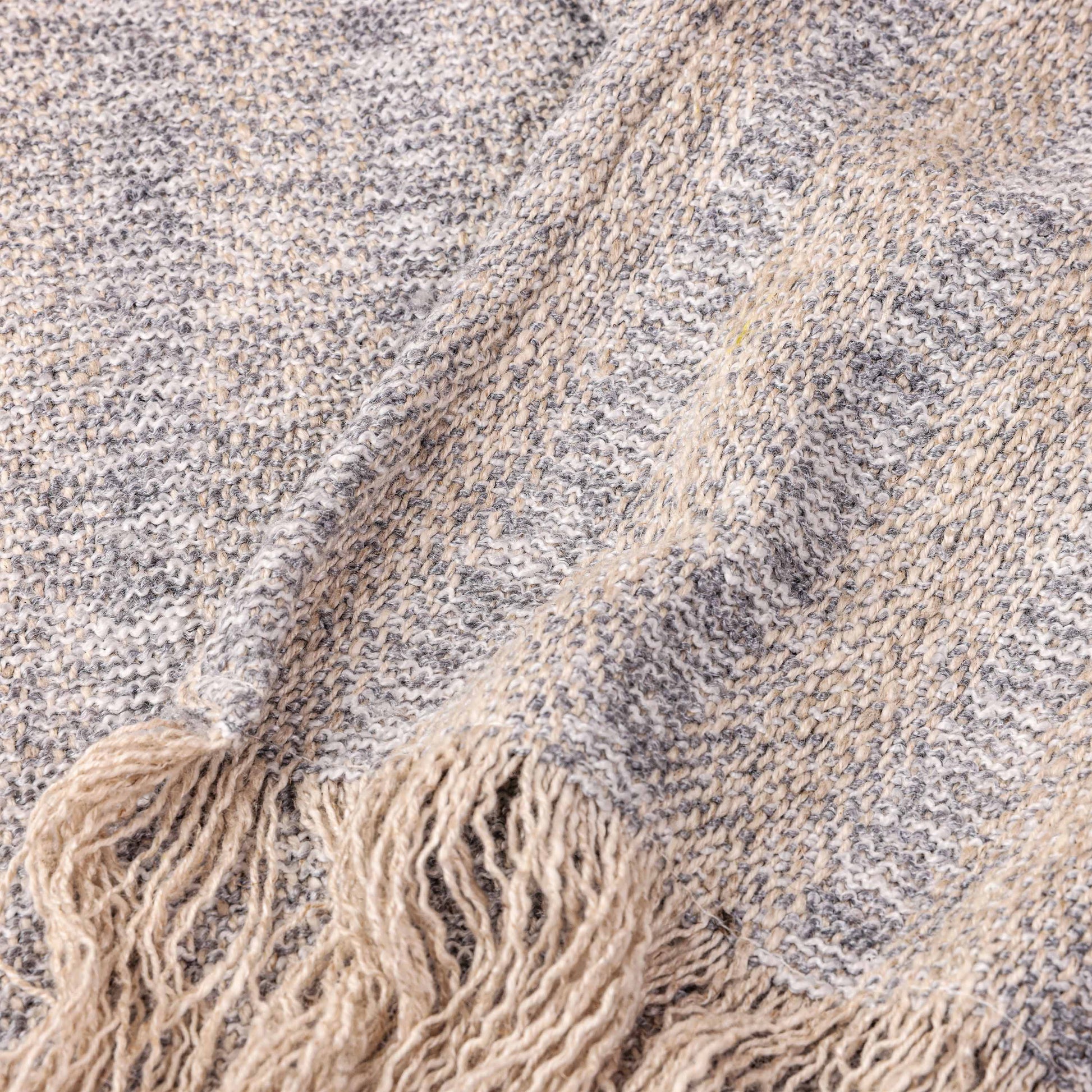 Add a touch of understated luxury to your space with our gold and grey throw, featuring a sophisticated stripe pattern and subtle grey mélange. Woven from premium yarns, the blend of warm gold and cool grey creates a perfect balance of elegance and warmth. The frayed edges add a relaxed, artisanal finish, making this throw as stylish as it is cozy. Perfect for draping over your furniture or wrapping yourself in comfort, this throw is a great versatile addition to your home decor.