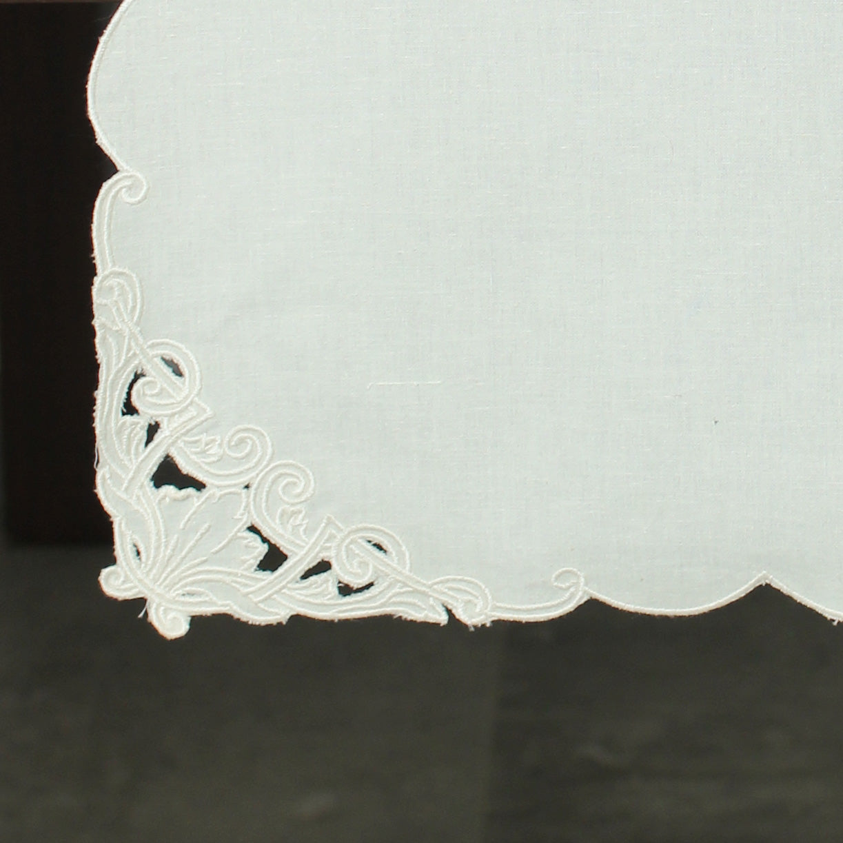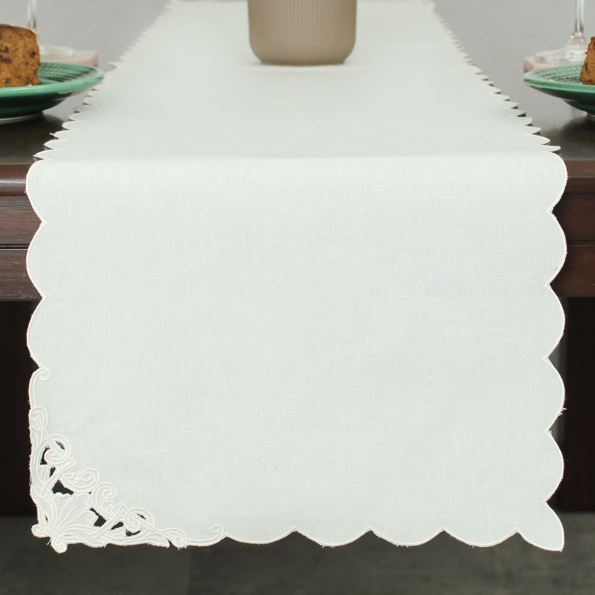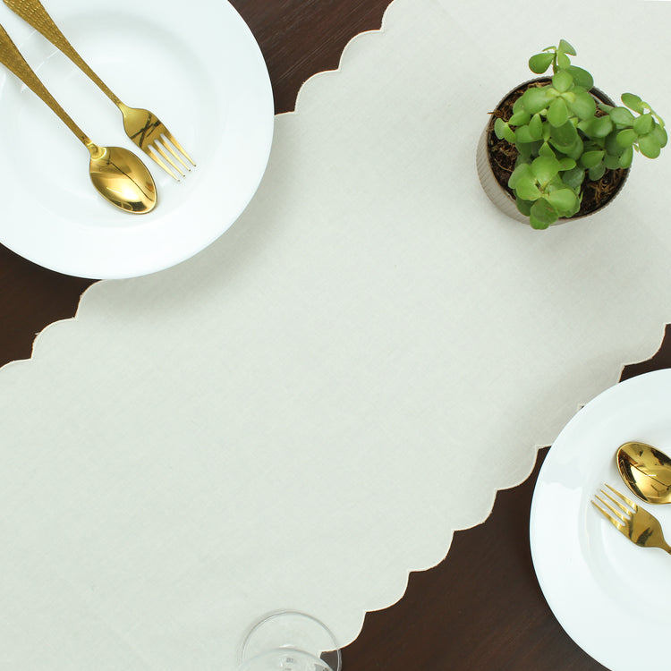 Elevate your dining experience with our stylish runner featuring intricate cutwork designs on two edges. The simplicity yet uniqueness of the design is the beauty of this runner, adding a hint of sophistication to any party. The scallop adds to the vintage charm and timeless design, making it a classy addition to your table.